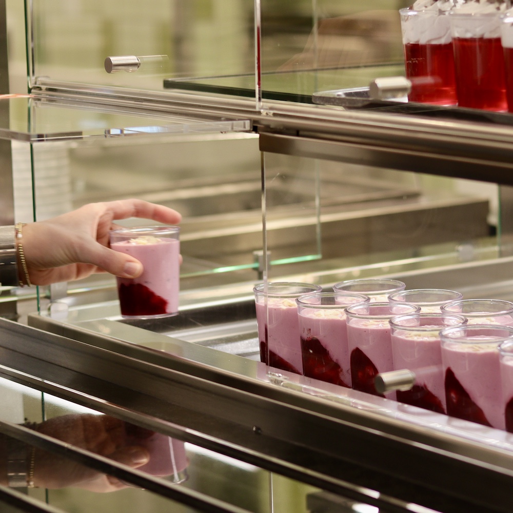 Durchdachte Details machen den Unterschied: Verschiedene Becher- und Schalenformen sowie klare Farbkonzepte schaffen Orientierung und erleichtern die Arbeit. Jedes Teil hat seinen Platz und seinen Zweck, was Sicherheit und Ordnung garantiert. So sieht moderne Mensa aus – funktional, komfortabel und gastfreundlich.