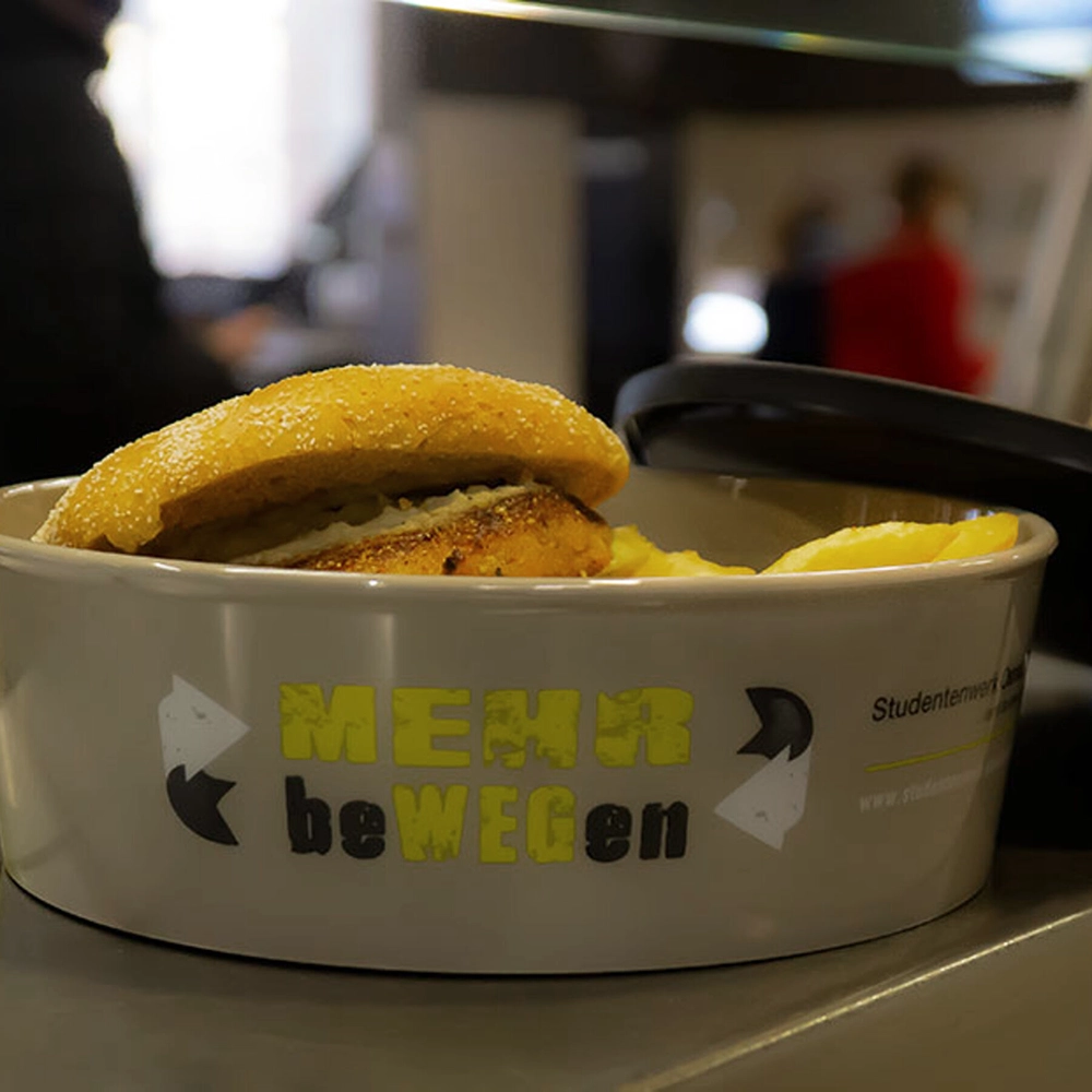 Das Studentenwerk Osnabrück hat nach einer nachhaltigen Lösung für den Transport seiner To go-Angebote gesucht und sich für die wiederverwendbaren Mehrweg-Schalen von ORNAMIN entschieden. Das individuelle „MEHRbeWEGen“-Design verleiht den Schalen einen tollen Wiedererkennungswert und macht sie zum Hingucker. Das Pfandsystem wurde nach erfolgreicher Einführung in den Mensen auch auf die Cafeterien ausgeweitet. Alleine im Zeitraum November 2020 bis Dezember 2021 wurden über 250.000 To go-Essen verkauft, knapp 75 % davon in den ORNAMIN-Mehrwegschalen. Somit konnten in diesem Zeitraum fast 200.000 Einwegschalen und ebenso viele Einwegdeckel eingespart werden. Ein toller Beitrag zum Schutz der Umwelt! Weitere Infos finden Sie im Nachhaltigkeitsbericht des Studentenwerks Osnabrück.