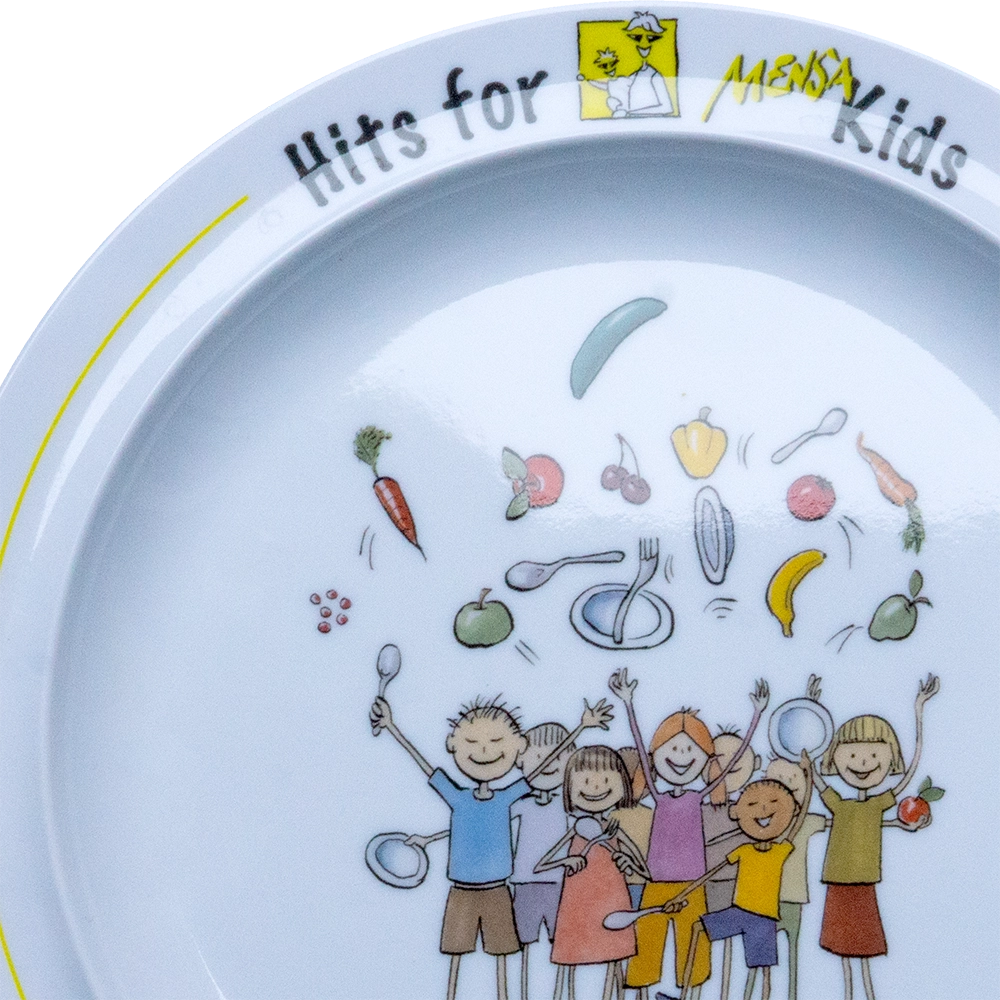 Neben den To go-Schalen setzt das Studentenwerk Osnabrück auch Mensa-Geschirr von ORNAMIN ein, beispielsweise grüne Schalen für das Mensa Active-Angebot oder den beliebten „Hits for Kids“-Teller, mit dem das Studentenwerk einen schönen Beitrag im Sinne sozialer Nachhaltigkeit leistet. Denn um Studierenden mit Kindern den Studienalltag zu erleichtern, erhält der Nachwuchs bis zum vollendeten 10. Lebensjahr eine kostenlose Mahlzeit. Speziell für dieses Angebot ist ein farbenfroher gestalteter Teller aus kratz- und bruchfestem Qualitätskunststoff von ORNAMIN im Einsatz.